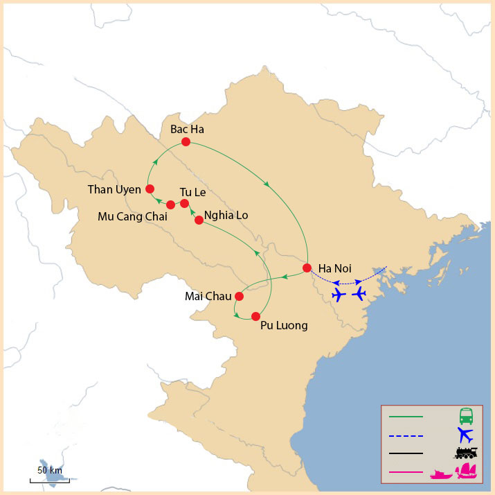 Au cours de ce circuit, les voyageurs rencontrent différentes minorités ethniques telles que les Thai Blanc, Hmong et Dao, dont les traditions culturelles et les modes de vie agricoles restent très vivants.